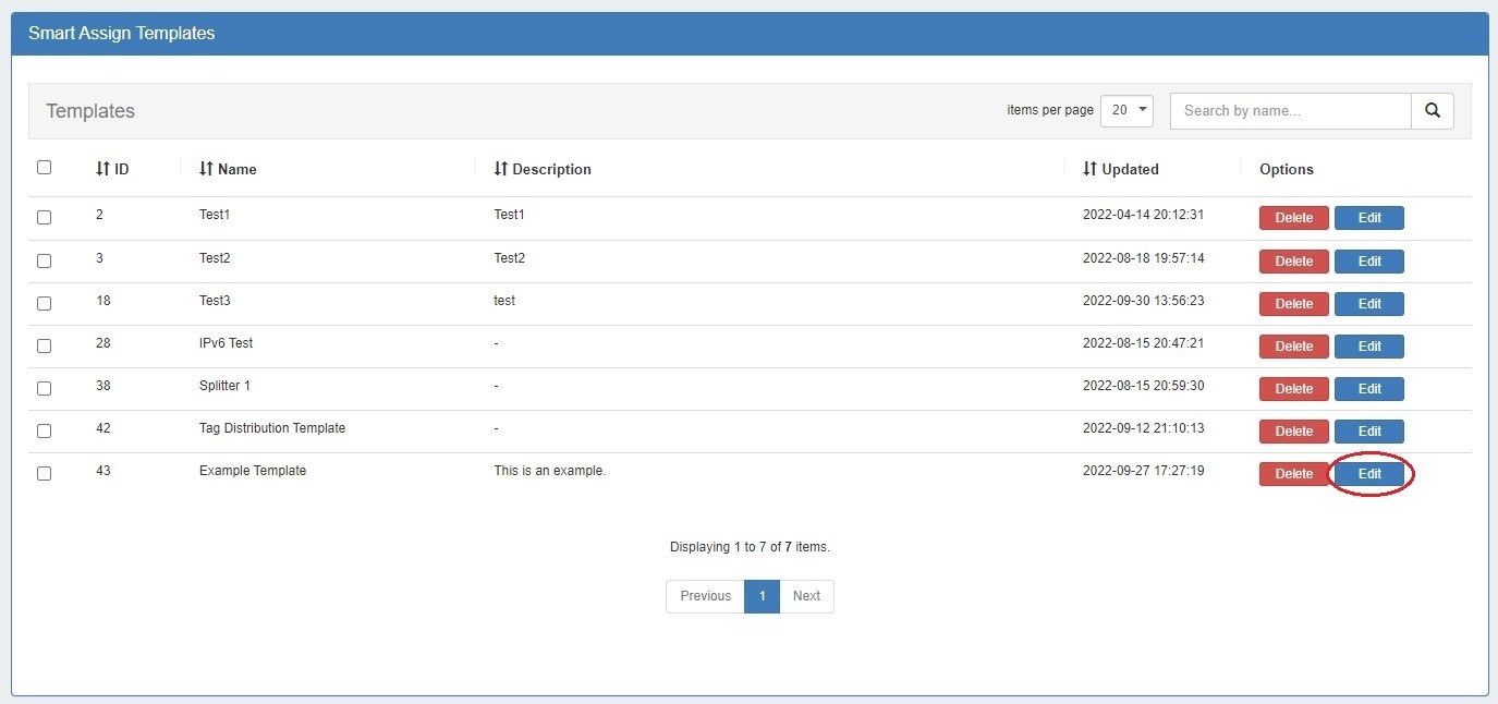 The Smart Assign Template List displays all existing templates, and is where you can view, edit, and delete existing templates.