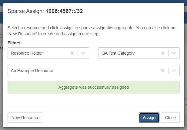The resource will be assigned according to the distribution algorithm and may be further managed in IPAM Manage for the aggregate.