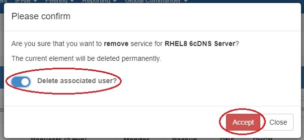 A modal will pop up to confirm the deletion. You may also delete the associated user.