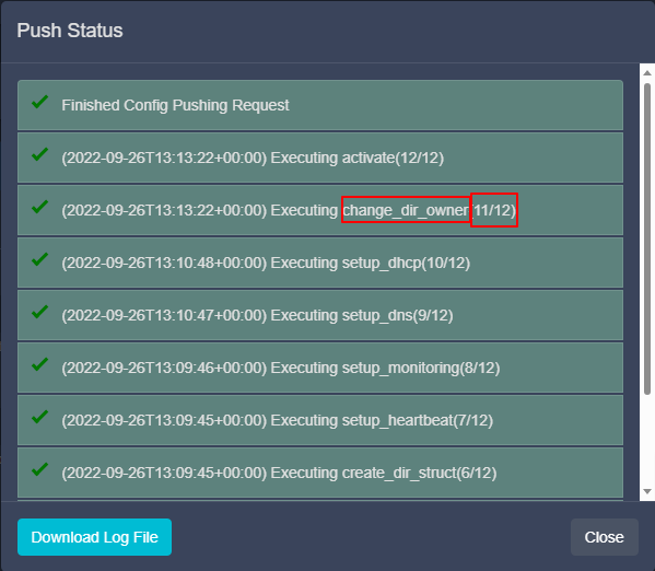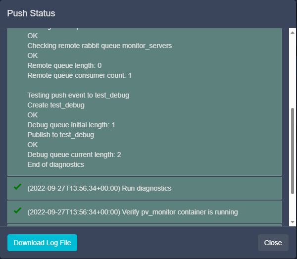 You may download the results by clicking "Download Log File", and "Close" when done.