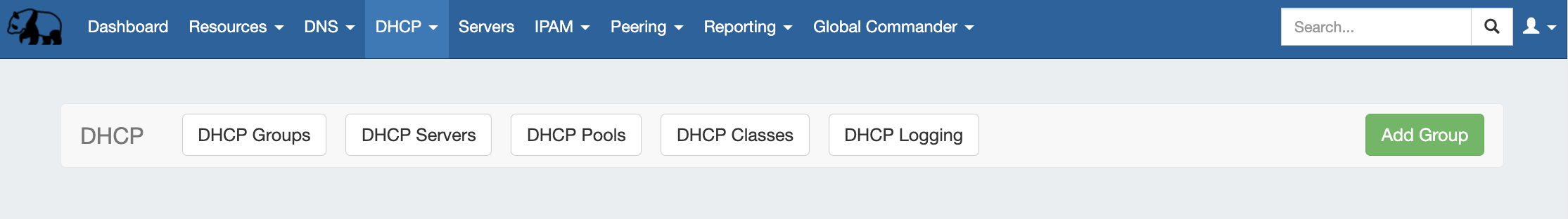 To create a new group, from the DHCP Tab, select the DHCP Groups sub menu. Then, click the "Add Group" button at the top right of the page.