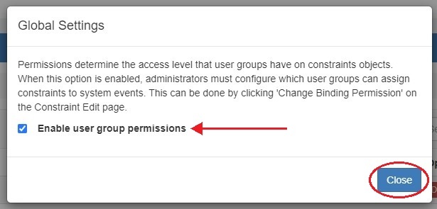 From there, select "Enable user group permissions" to limit constraint visibility by User Permission Group.