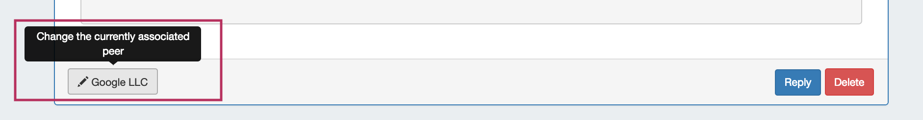 The Peer's name will be tagged to the bottom of the email message. If you need to change the associated Peer, you can click the tagged Peer to repeat the process and select a new Peer.