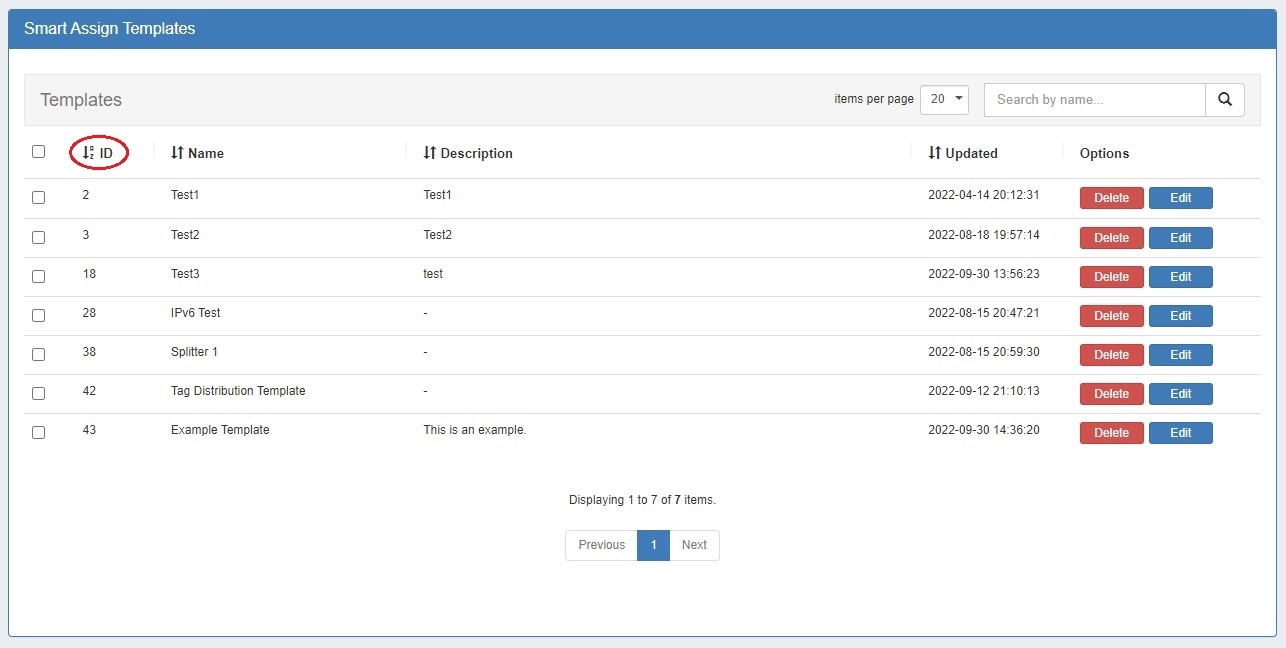 The Smart Assign Template List displays all existing templates, and is where you can view, edit, and delete existing templates.