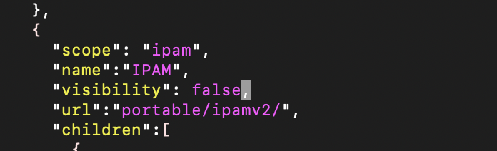 Since we are wanting to hide the "IPAM" tab in the standard area of ProVision, we need to scroll down to the "menubar" navigation grouping, and then find the second level tab with name "IPAM".