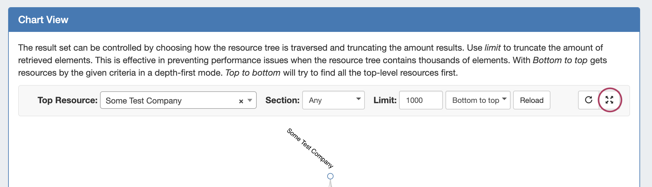 You can also access Chart View from a resource entry page by clicking the "Open Chart View" button at the top. This will automatically position the entry as the "Top Resource" in the chart.