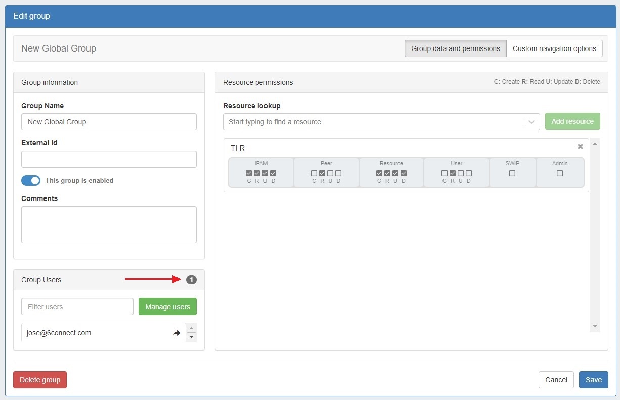 In the example above, the group “MyGroup” allows the users Bob Smith and Jane Doe to only read IPAM and DNS data for the Resource “Awesome Co”.