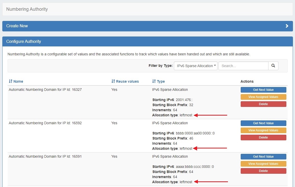 Admins may select a system default Sparse Allocation scheme to use for IPv6 Sparse Allocation. Available values are Leftmost, Center, and Rightmost. If not otherwise specified, Leftmost is the default.