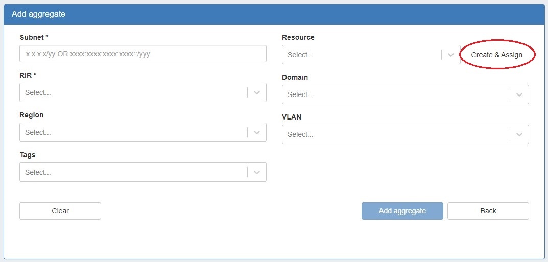 Select "Create & Assign" to create a new resource to which to assign the aggregate.