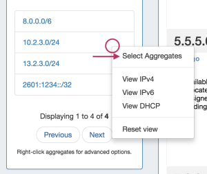 - Clicking on the CIDR listed in the Aggregate Info box in IPAM Maps