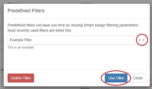 Users can save Smart Assign filter criteria for repeat use by saving them as Predefined Filters, accessible through the gear menu at upper right of the Smart Assign section.
