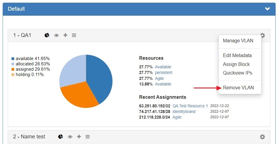 - From the VLAN Utilization Box for the VLAN, by clicking the gear icon and selecting Remove VLAN