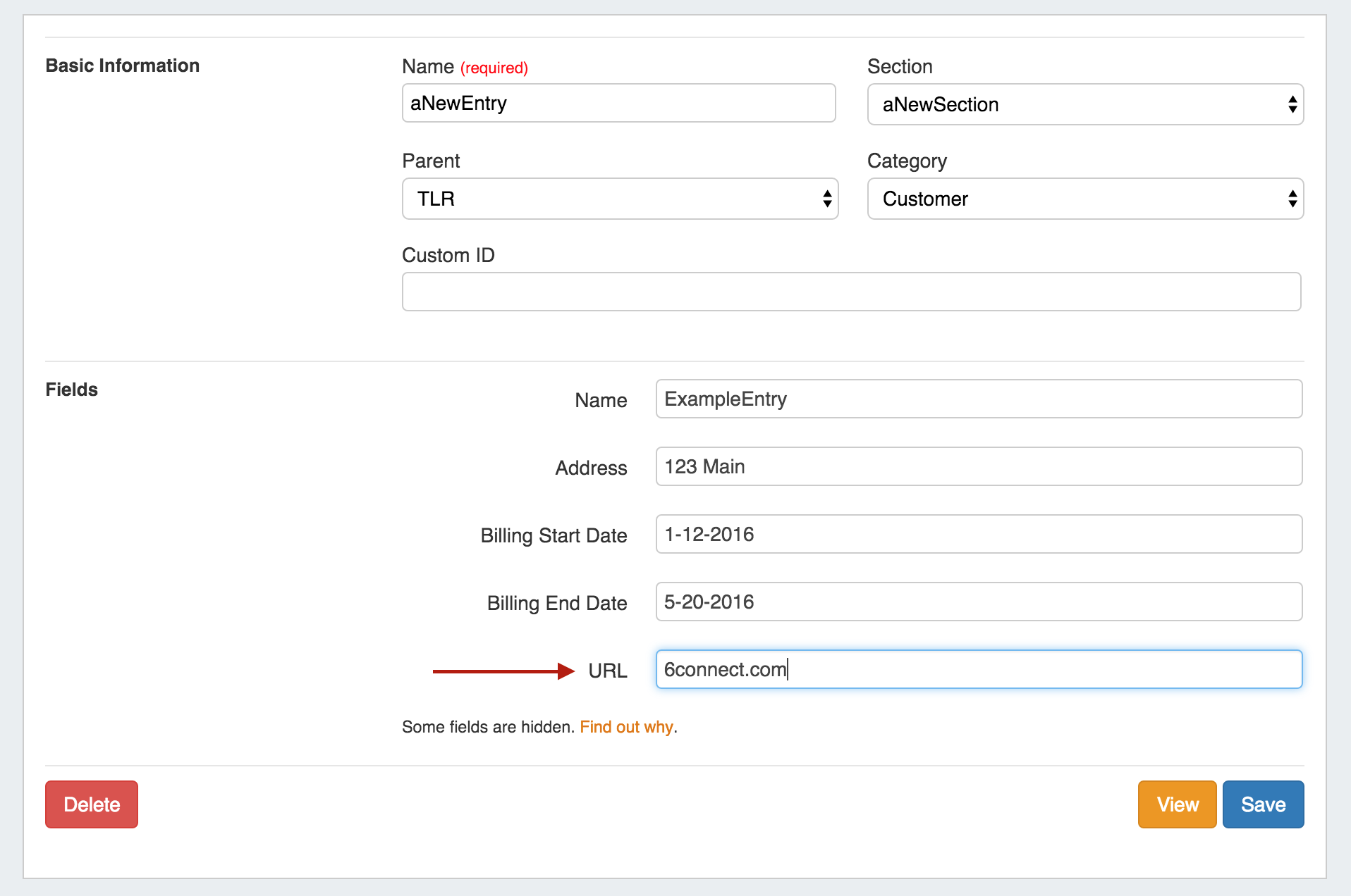 Note: The URL field will automatically prefix the value with "https://www." if it is not already included in the address. However, be sure to include the Top Level Domain.