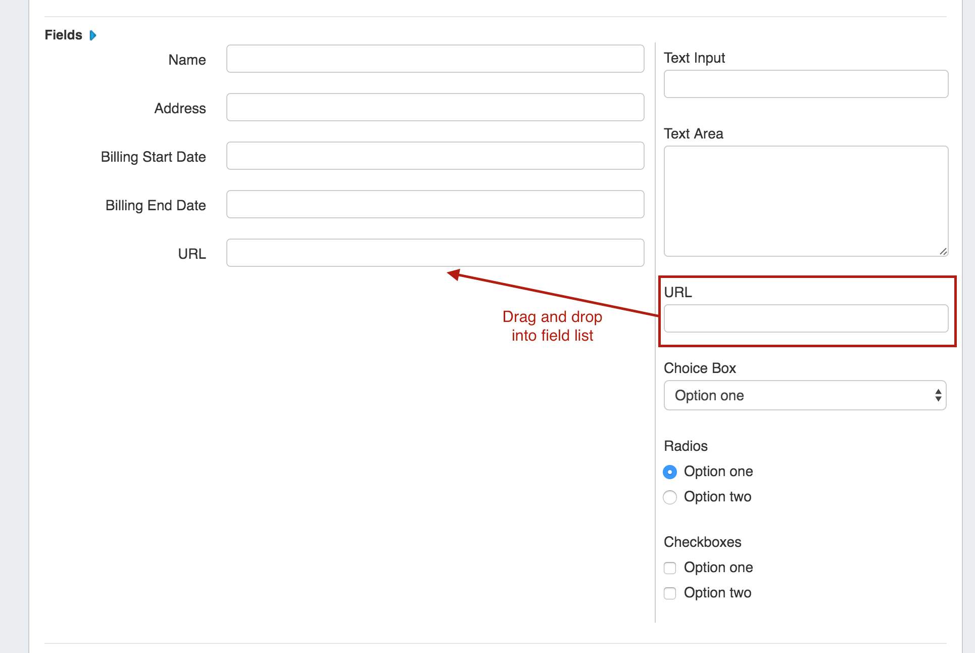 To add the URL field to a Section, edit the desired Section, then drag and drop the URL field type into the Section's field list and save your changes.