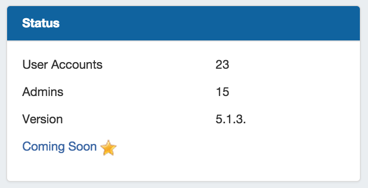 Shows ProVision status information, including number of user accounts, number of admin accounts, current version number, and a link to the "Coming Soon" section of the ProVision documentation.