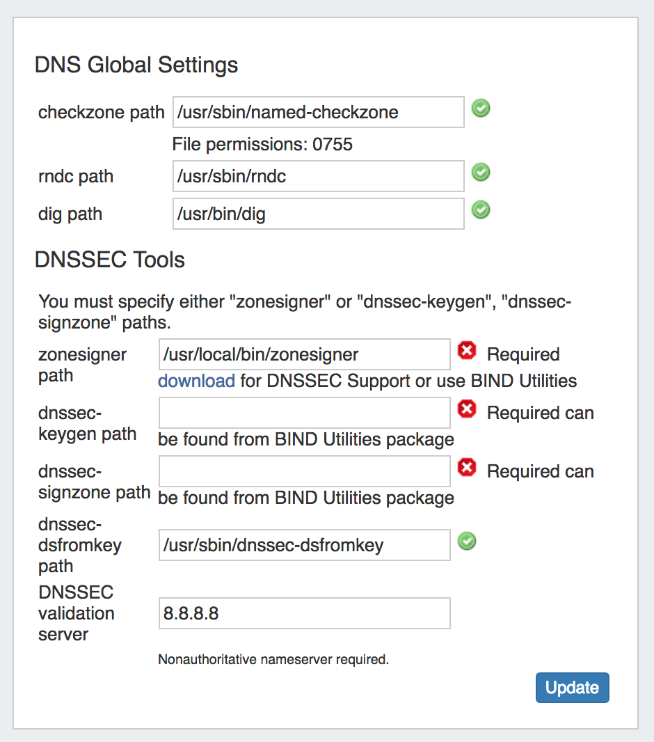 zonesigner path : Enter the zonesigner path that will be used for DNS. Zonesigner is required if dnssec-keygen and dnssec-signzone are not set.
