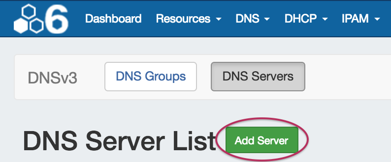 To create a new server, start from the DNS Tab, select the DNS Servers sub menu. Then, click the "Add Server" button next to "DNS Server List".