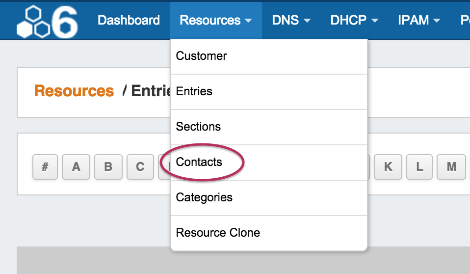 The Contact Manager is accessed from the Resource tab dropdown menu, under "Contacts"
