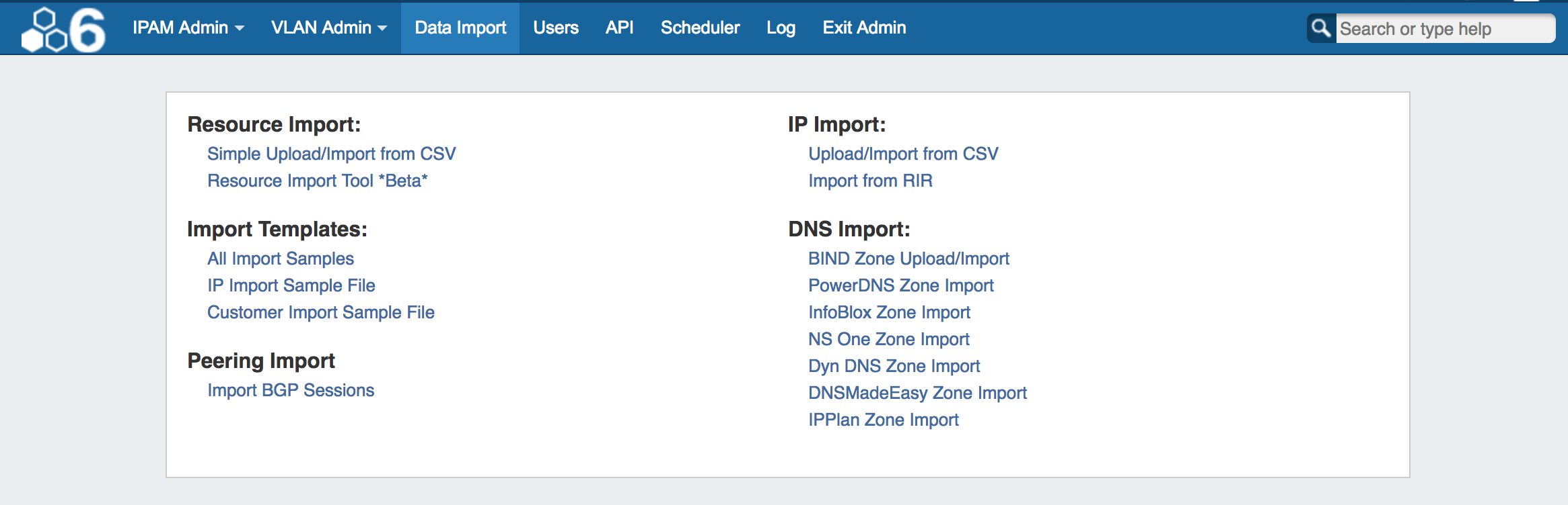 Importing blocks from your RIR Source IP is available from the Data Import Tab in the Admin area of ProVision. This feature uses the RIR Org ID to identify a Source IP and determine blocks assigned to your organization that are available for import.