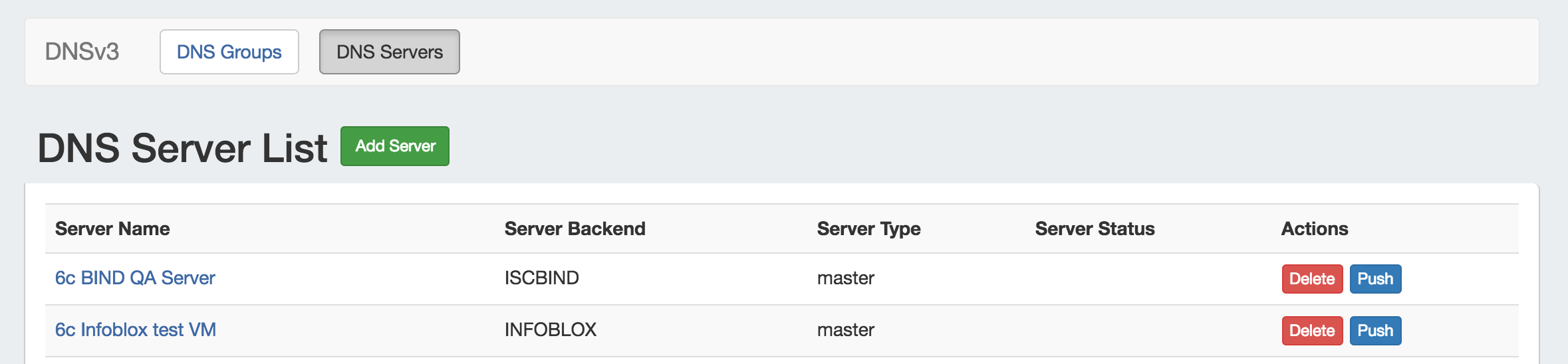If creating a new server, ensure that "InfoBlox" is selected for the DNS Service.