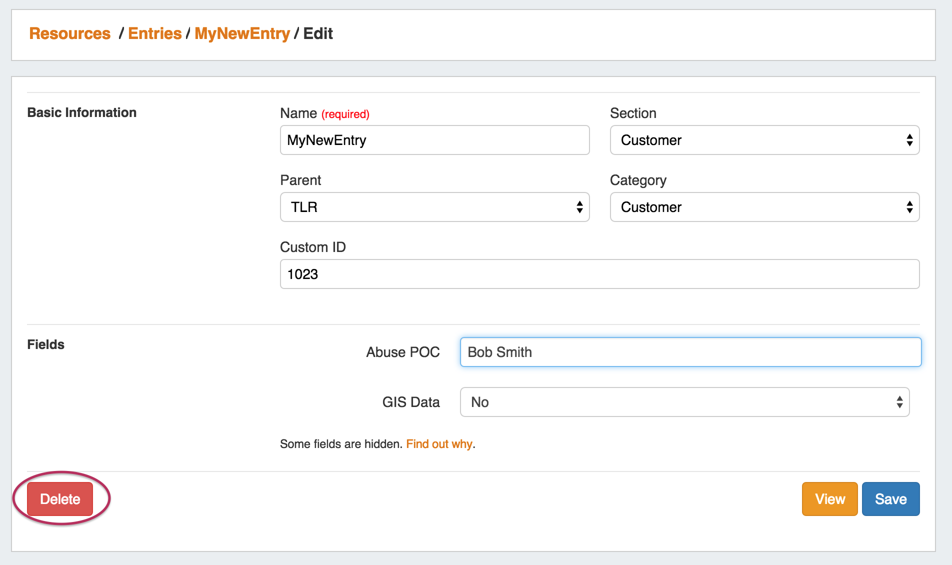 To edit or delete an Entry, go to the bottom of that resource's Entry Page, and select "Edit".