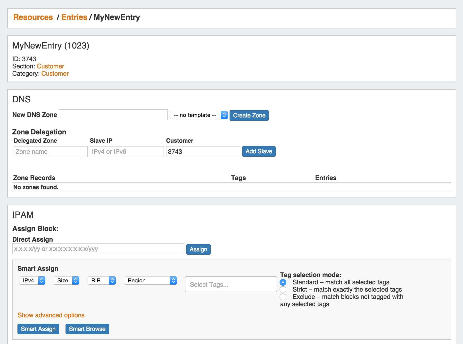 From here, you can work with your selected Gadgets, performing tasks such as assigning DNS zones, IP Blocks, assign Contacts, and more. See the (7.0.0-7.0.2) Gadgets Page for detail on working with individual Gadgets.