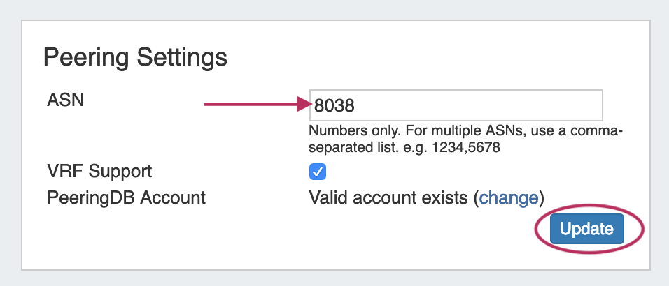 Two components need to be set up before you can begin to do common peering tasks in ProVision - set at least one ASN, and set PeeringDB account credentials.