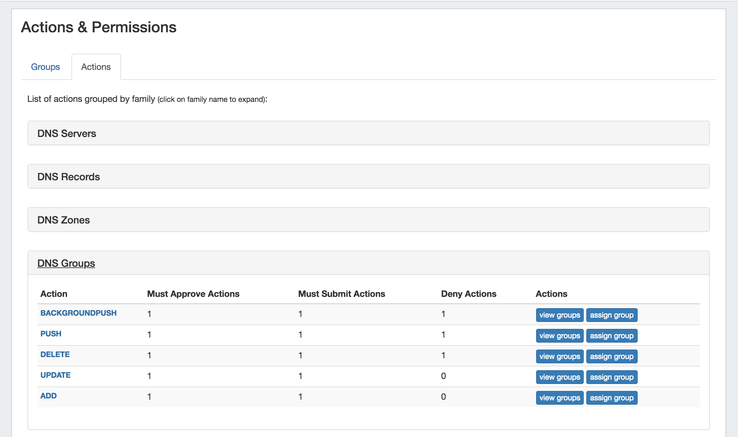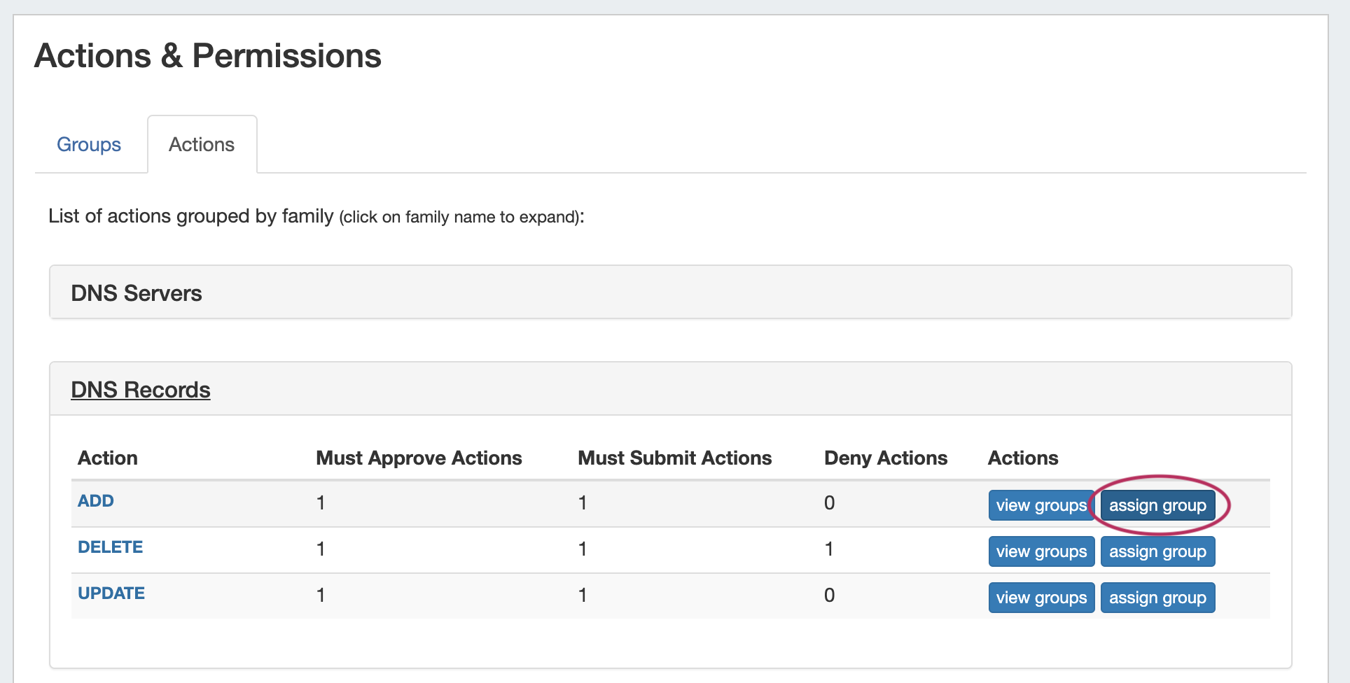 Actions - View Groups Page