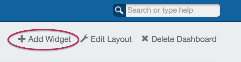 To add a widget to personalize your dashboard, click on the "Add Widget" button at the top of the page.