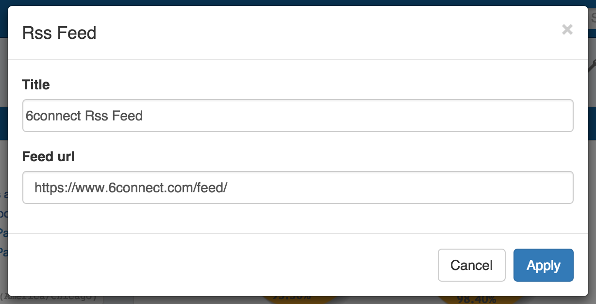 Shows the most recent five entries of a selected RSS Feed. Feed links open in a new window when clicked.