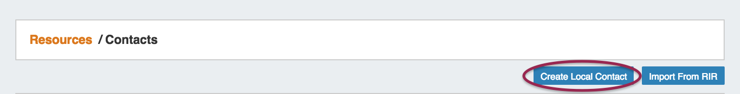 The Contact Manager lists and imports contacts into ProVision. You can create new contacts manually, or import contacts from RIR. Contacts may then be assigned to ProVision resources through the Contacts Gadget.