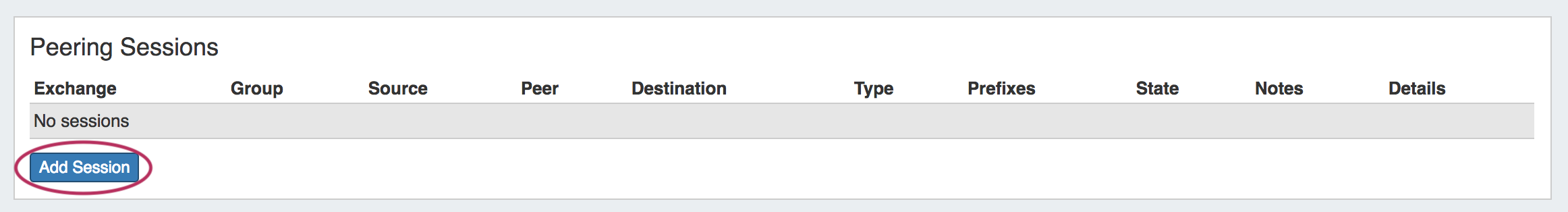 Existing sessions may be managed by clicking on the "View" link for the session, bringing up the Peering v2 session details page.
