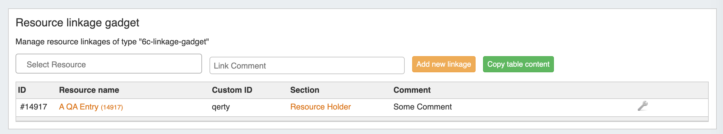 To use the Resource Linkage Gadget, first, ensure that "Resource Linkage" is enabled under "Manage Gadgets" for the Section type of the Resource being used.