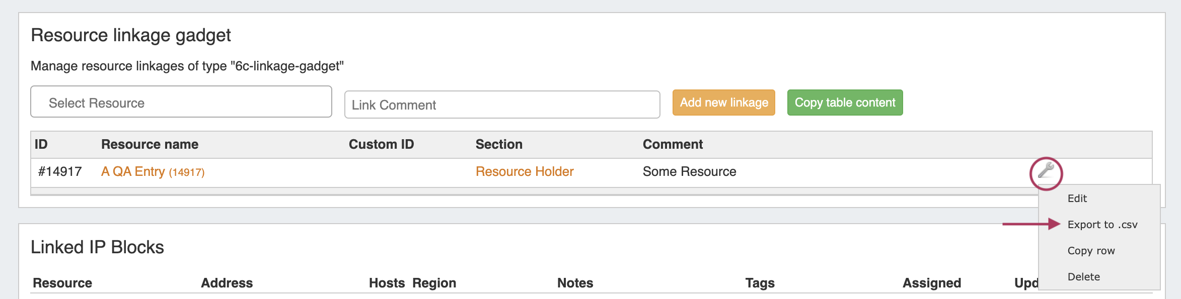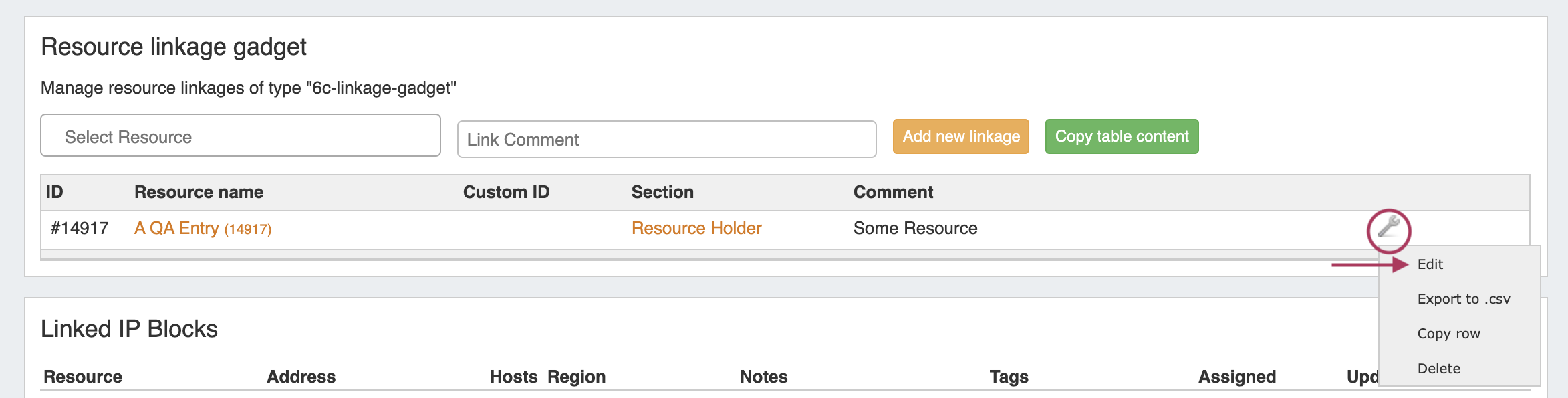 The Resource Linkage Gadget also provides information to the Linked IPs Gadget - Resources linked here will have their IP Block information displayed in the Linked IPs Gadget.