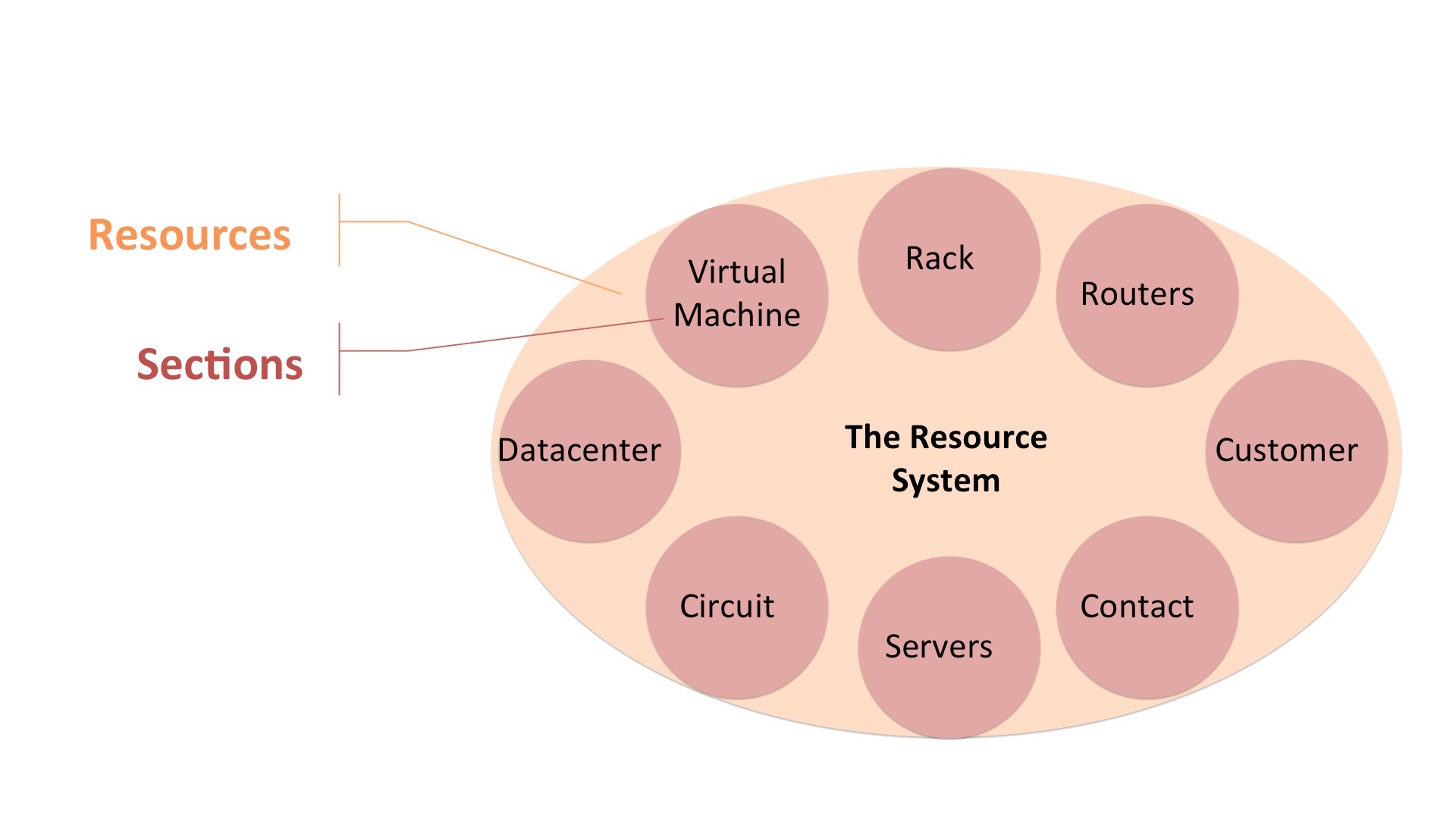 The generic type of a resource is called a Section. General terms such as Rack, Routers, Customer, Servers, and Datacenters would be considered "Sections" in ProVision.