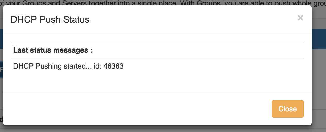 DHCP Groups allow for organizing multiple pools together and linking those pools with one or more servers. Pools may be pushed individually, as a Group, or at the server level.