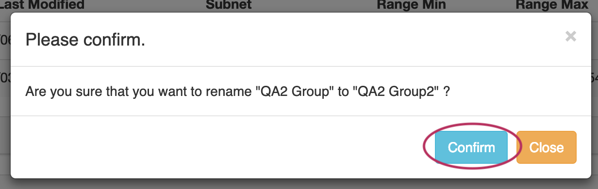 Click "Confirm" to save your changes, or "Close" to exit without saving.