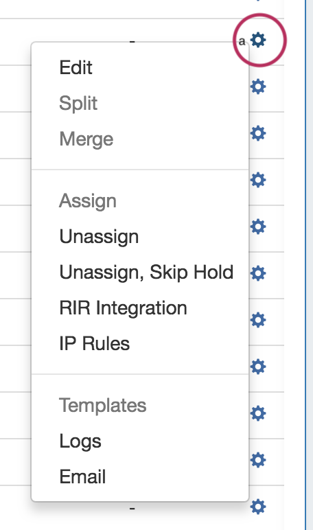 To split a block manually, click on the Action Menu (Gear icon), or right-click anywhere in the row for the available block you wish to modify.