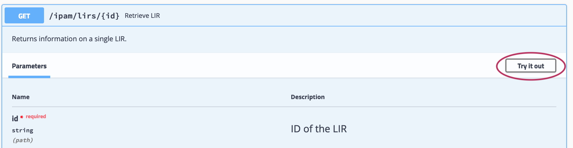 2.  Expand the call to view its details, then click the "Try it out" button.