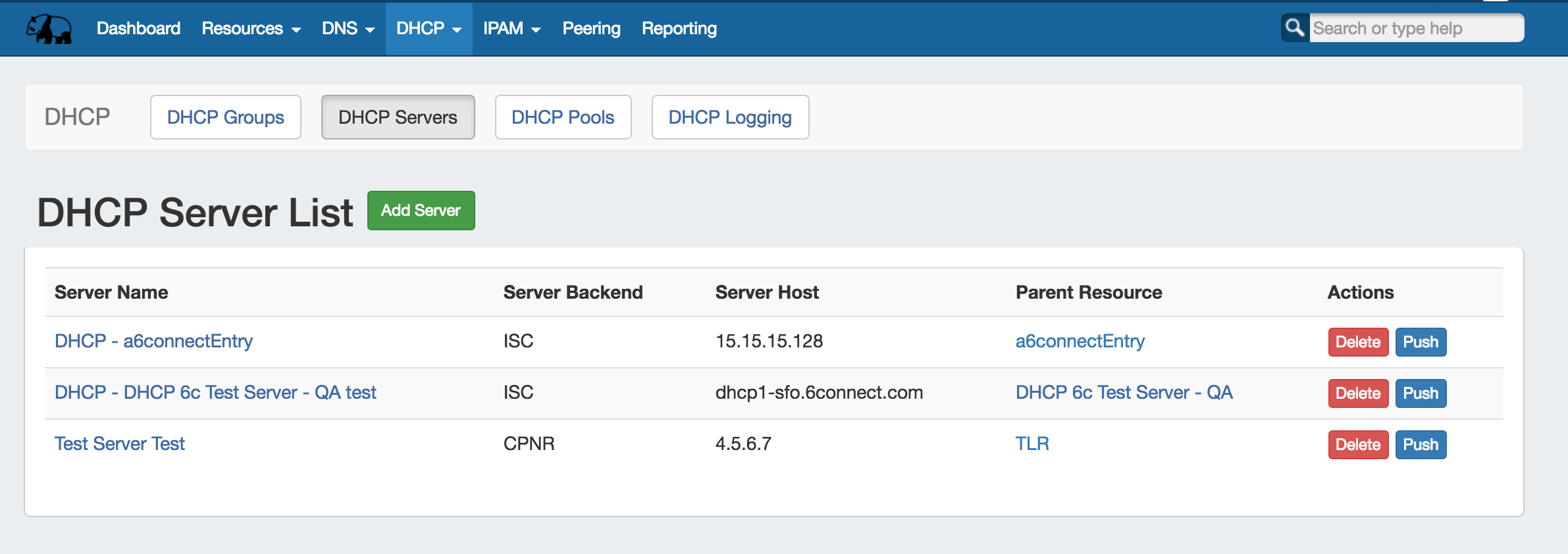 - Server: From the DHCP Servers list "Push" button. See Working with DHCP Servers - Pushing a server