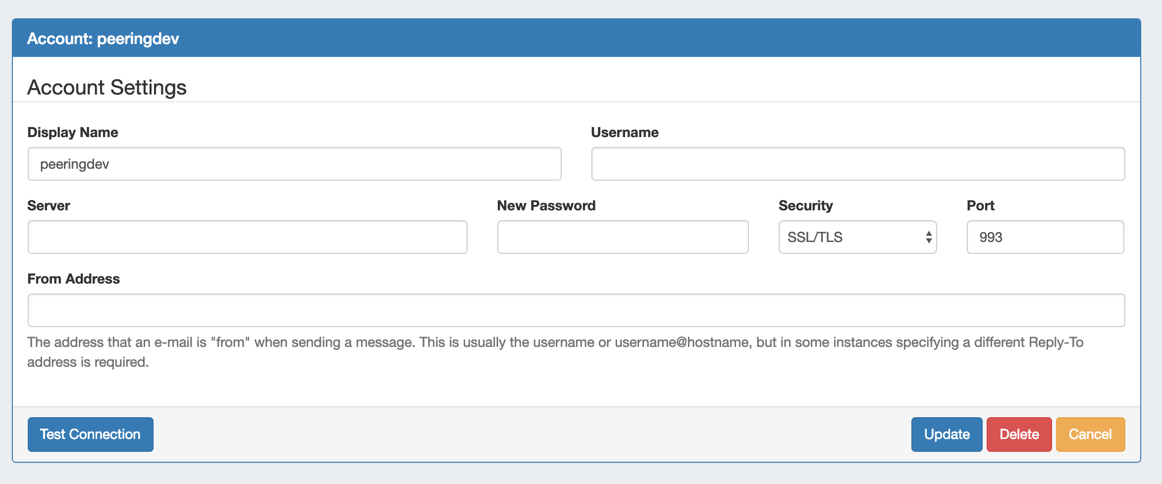Edit the account settings as needed, test the connection if desired, and click "Update".