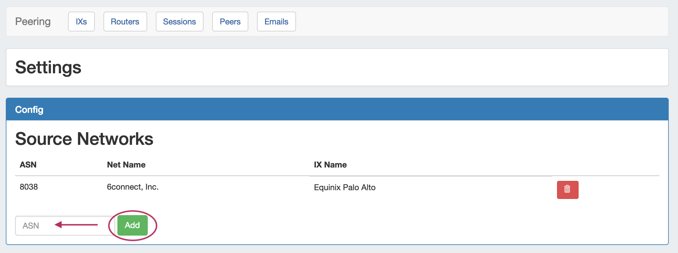 - Delete an ASN by clicking the red "Delete" icon for the row under Source Networks.