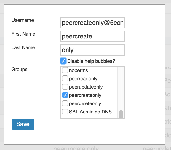 Click "Save" when complete. After adding the group, you can add users to the group by selecting the group when editing a user account.