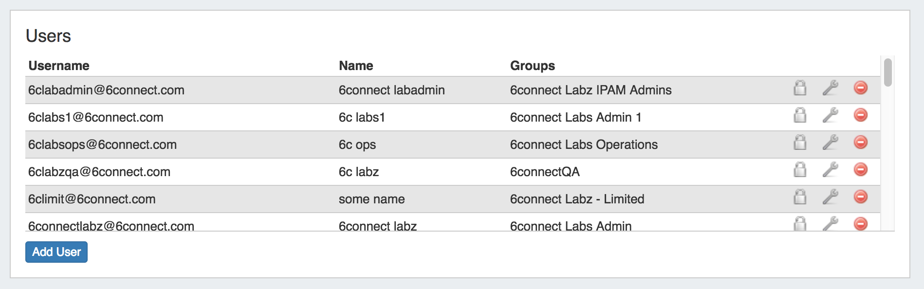 You can also bring up the same dialog to edit a user's information by clicking on the Action Menu (wrench icon) at the end of the row for the user.
