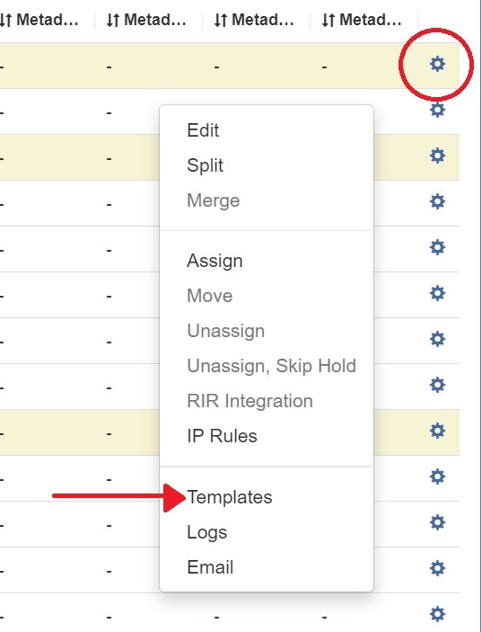 Templates for a block are available under the Action Menu (wrench icon or right-click) for that block. Templates are only usable from IPAM Manage.