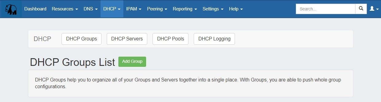 DHCP groups allow for organizing multiple pools together and linking those pools with one or more servers. Pools may be pushed individually, as a group, or at the server level.