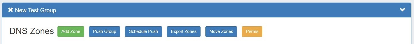 All zones under a DNS group may be exported to a .zip file by clicking the "Export Zones" button at the top of the group module.
