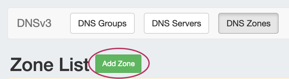 You may also add new zones from the DNS Zones tab, by clicking "Add Zone" next to Zone List.