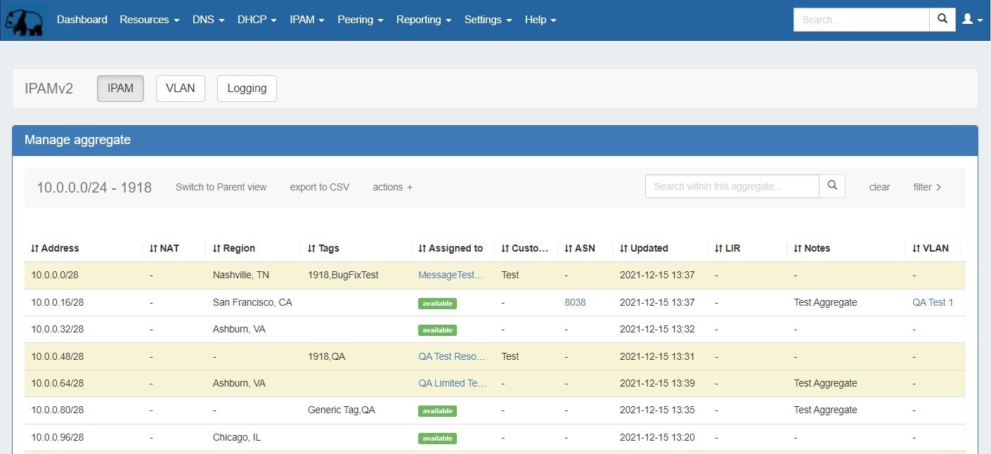 These actions are detailed on the IPAM Tab page under Working with IPAM Aggregates. This page will focus primarily on block-level actions and management.