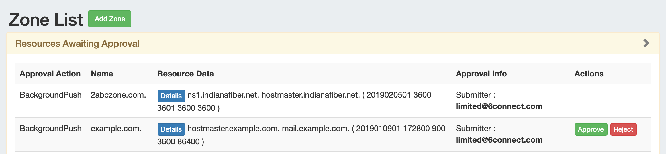 7.1.0 DNS Zone LIst Pending Approvals.png
